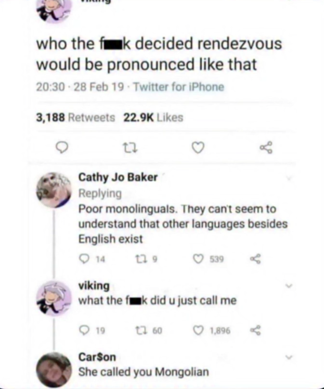 No no a Mongoose is a small carnivorous animal. She called you a Monologue.