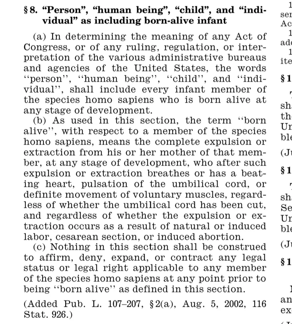 This basically says that fetuses don’t qualify? If you extract them from the mother, they won’t have a heartbeat or voluntary movements