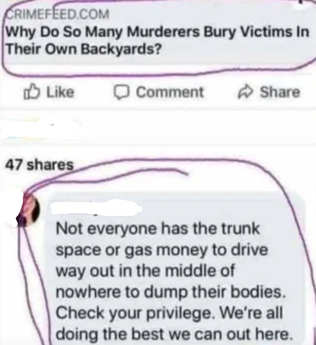 Of course, the main reason to maime/dismember the corpse is for ease of transport. It’d be pretty silly to drag the whole body to the woods and then cut it to pieces.