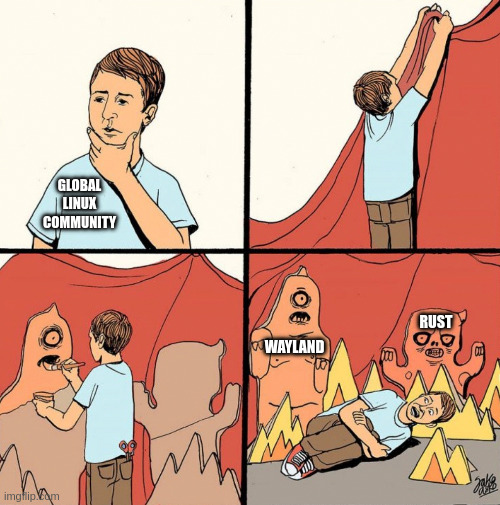 Few if any distros ship with Rust’s toolset installed, and the officially recommended way to install it, this is from rust-lang.org…is to pipe curl into sh. Don’t ask end users to install a programming language to compile your software.