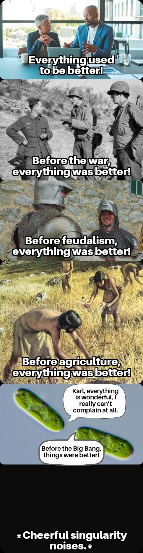 I remember learning in an anthropology class about how the pre-agrarian/hunter gatherer era was actually maybe the best time for humans in terms of amount of leisure