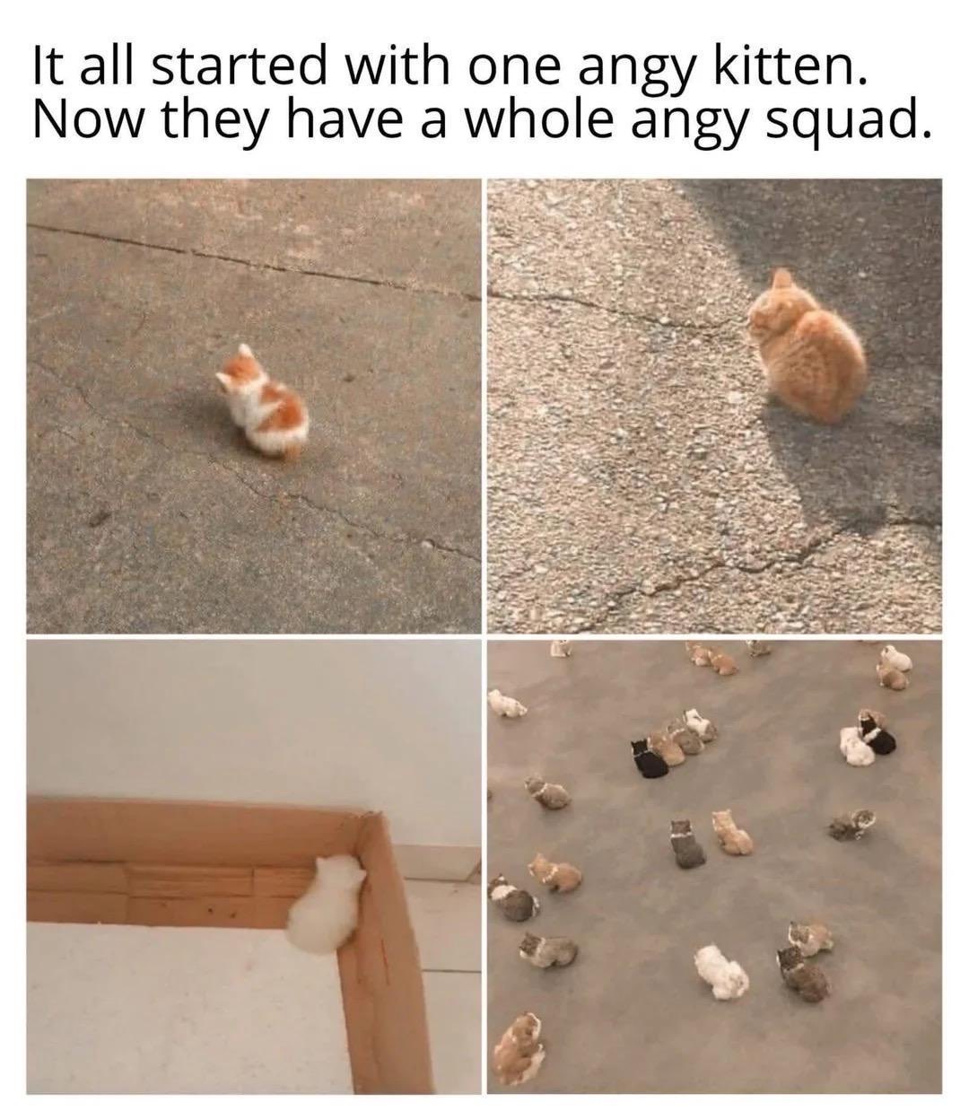 They’re kittens. The scrunched up because they’re tiny babies and have poor temperature regulation (ie, they’re cold)