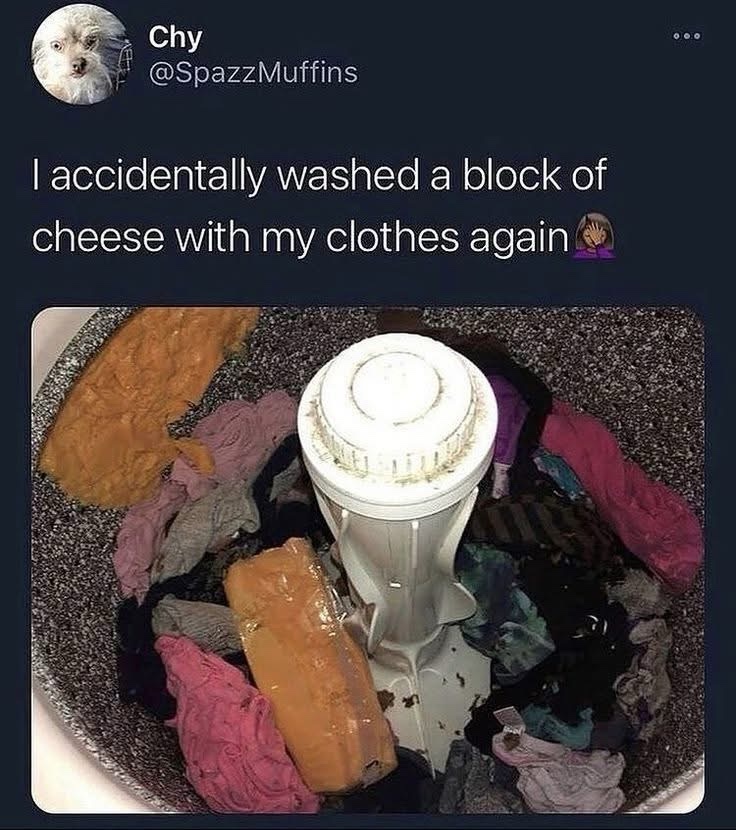 They accidentally washed a TV before the cheese incident and the static pod leaked. Must have some big-ass pockets.