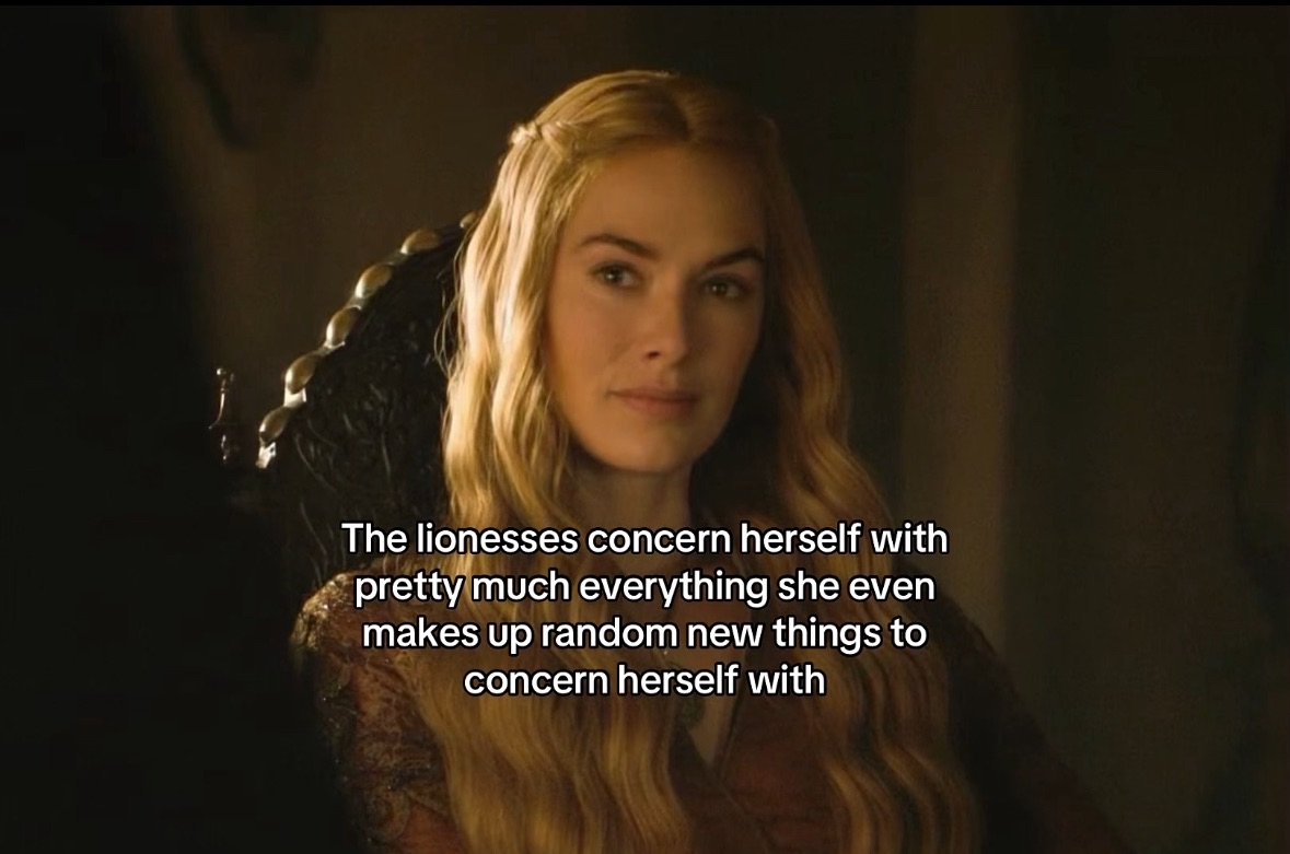 minus-squareMeron35@lemmy.worldlinkfedilinkarrow-up4·26 days agoNo it’s an accurate reflection of drunk self destructive Cersei in A Feast For Crows and enhances the joke