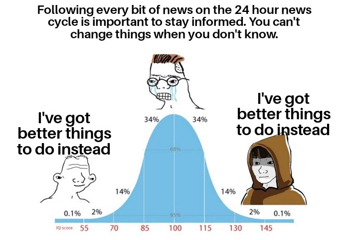 the people paying attention to the news constantly and using that to actually makw change are not watching a constant stream of it from their phone…they’re coordinating in groups to affect the most effecient change for their time/sphere of influence (first step generally being to secure the local government, the majority in the US are captured by local business/real estate baron interests)