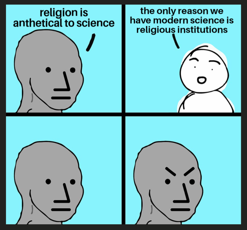 For one, the concept of evolution and then genetics absolutely supercharged racism and honestly Science had little capability to mitigate it. The 20th century may have gone very differently if Scientific leaders had immediately resoundingly rejected eugenics at an ideological level rather than attempt to differentiate what they studied from "race ““science”” in the details. In otherwords, Science was incapable of equipping the followers of its ideology with the systematic tools to resist fascism and oppression whereas you can easily demonstrate various different Religious groups that were instrumental in resisting fascism and oppression (and plenty more that weren’t, I am not defending that awful batting average at all).