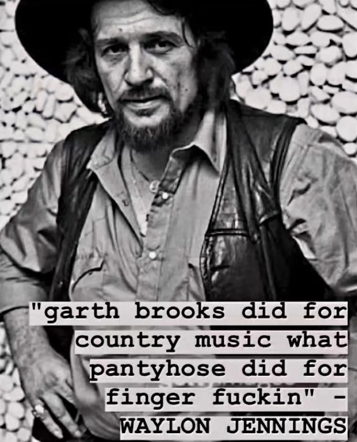 “The “what pantyhose did to finger-fuckin’” quote, meanwhile, was supposedly said by Waylon Jennings about Garth Brooks, as part of an international country music beef of the decade previous.”