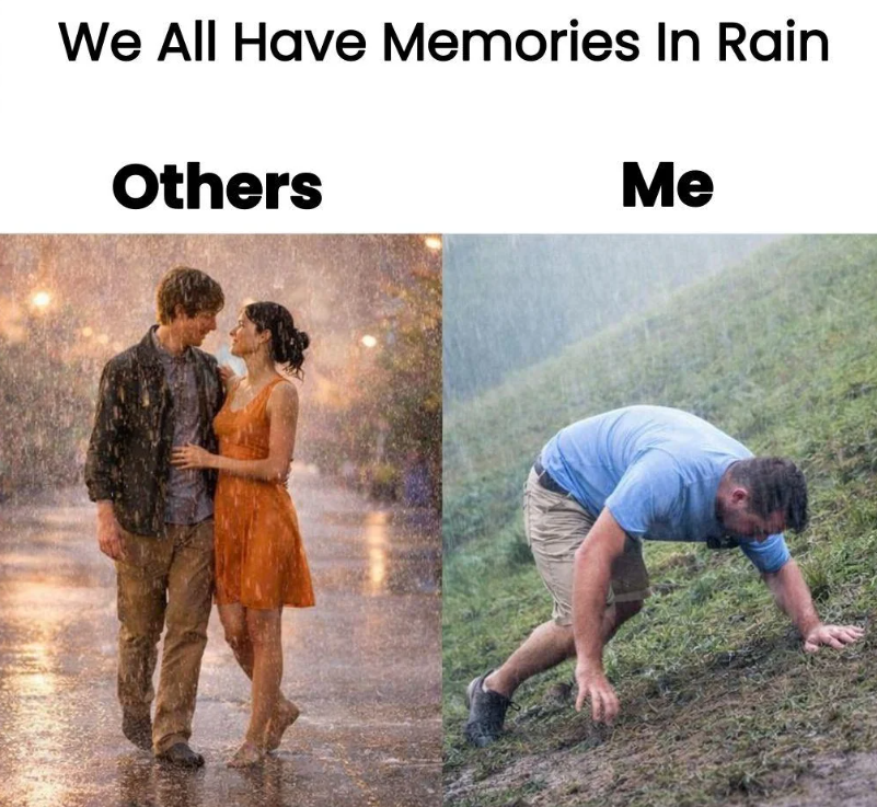 I love the rain. Walking, hiking, biking, you name it. Weirdly enough no romcom moments in the rain tho