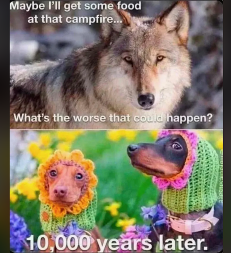 I mean they are much more well-fed now and have a warm home, veterinary visits, etc. I’d say they made a strategically good choice and apparently evolution agrees.