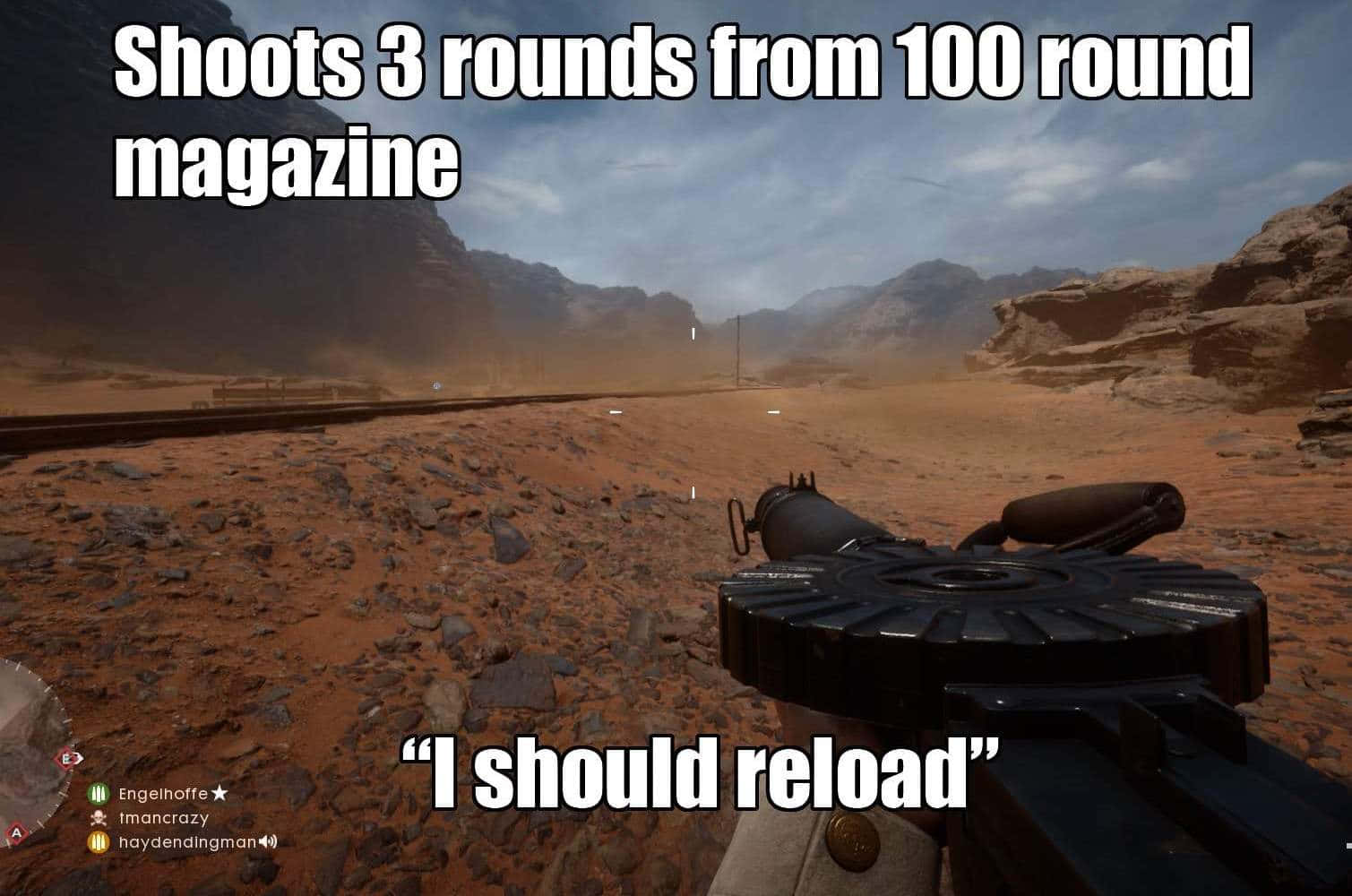 Until you get used to a game where discarding the mag actually discards the remaining rounds too