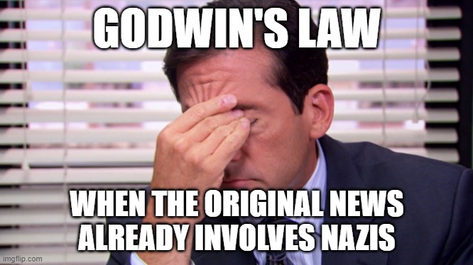 Godwin’s Law was an artefact of a time when we knew that Nazis were as extinct as Vikings and Mongol hordesmen, and comparing someone to one was dramatic hyperbole. It, of course, no longer applies.