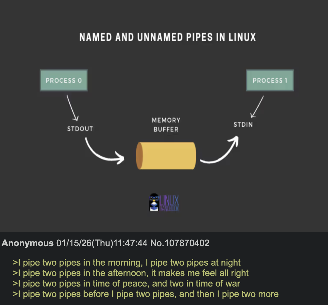 kali_fornication@lemmy.world to linuxmemes@lemmy.world · 2 months agopipe lifelemmy.worldimagemessage-square14fedilinkarrow-up1209arrow-down16
