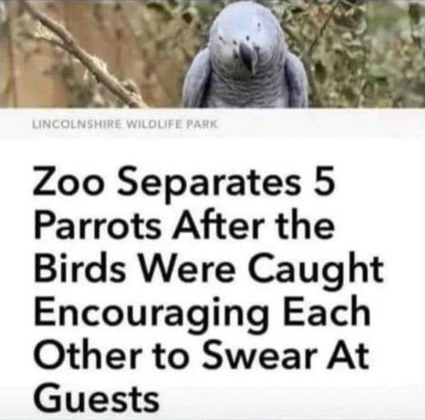 There’s a zoo near me that started out as a rescue park for abandoned parrots. One enclosure had all the potty-mouthed parrots in it and they hung up a sign saying