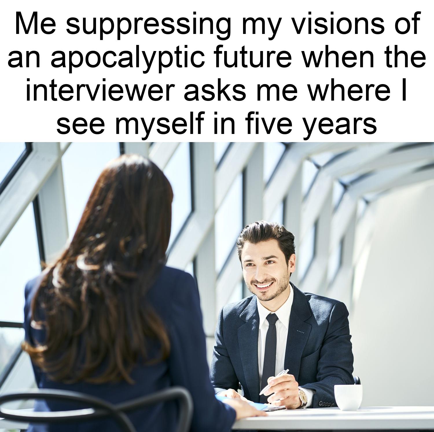 I got asked this question once, and I answered: either working here or going back to school. I graduated with my masters in 2024. But I appreciated that they got me thinking of my future realistically.