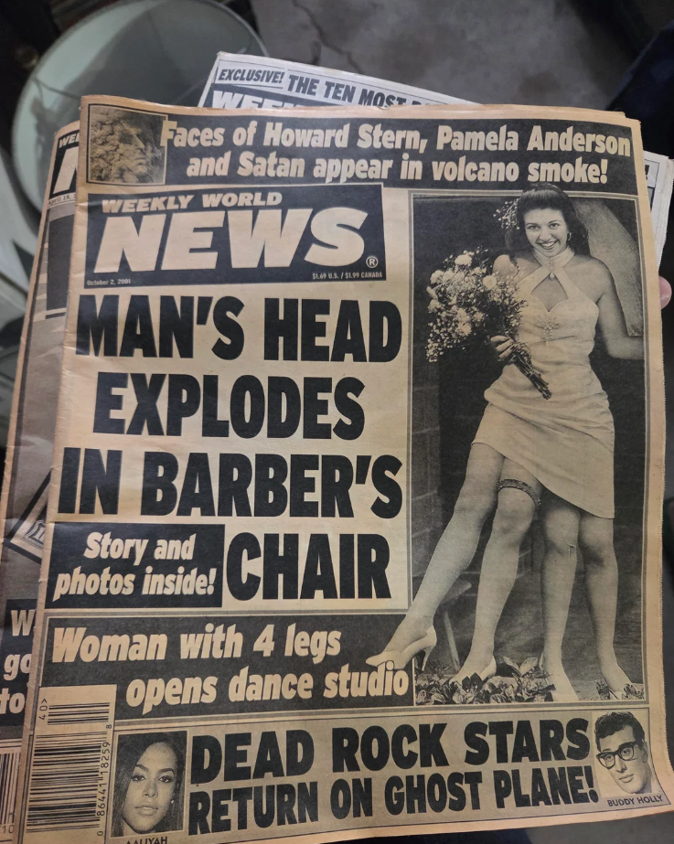 Woah now. Weekly World News was well-known by everyone as 100% laughable BS. Even people that think the moon landing was fake didn’t buy their stories.