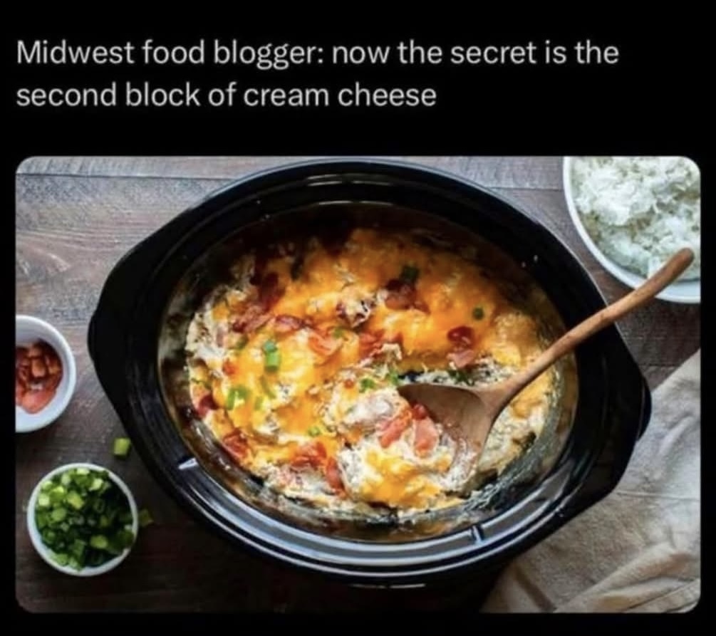 Packet of ranch mix. Then you put a packet of ranch on top of that. Now into the crockpot for a week.