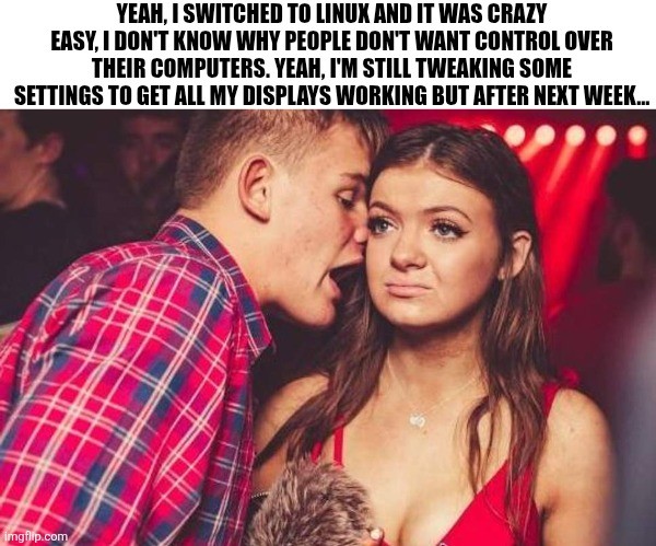I literally knew a guy like that in Ireland. I swear I don’t even know how I knew him, but I just remember him honing in on me to talk about fucking Linux in the pub every time he’d see me. I didn’t even use Linux on my own machine! ;_;