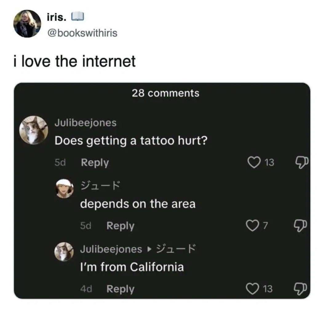 And I thought that was wild because at the time, getting your EYEBALLS tattooed was a thing.