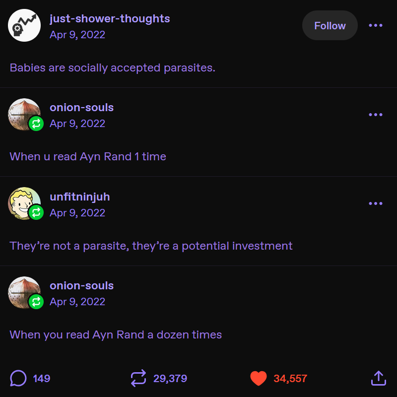 minus-squareArmand1@lemmy.worldlinkfedilinkarrow-up4·7 days agoBut WHERE’S THE PROFIT INCENTIVE. Capitalists, when their wives ask them to have sex with them.