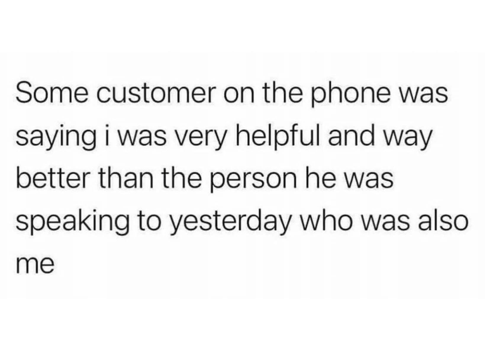 When I worked at a spanish electric company callcenter, I had a client that called and after to discuss their energy plan and he just started in an excruciatingly fast paced rant about Pedro Sanchez while on my mind I was like “bruh I’m not even from Spain”, after that and helping him with his inquiry, he called me “too professional for this company”, again I was on my mind “thanks you but you ruined my median call time”.