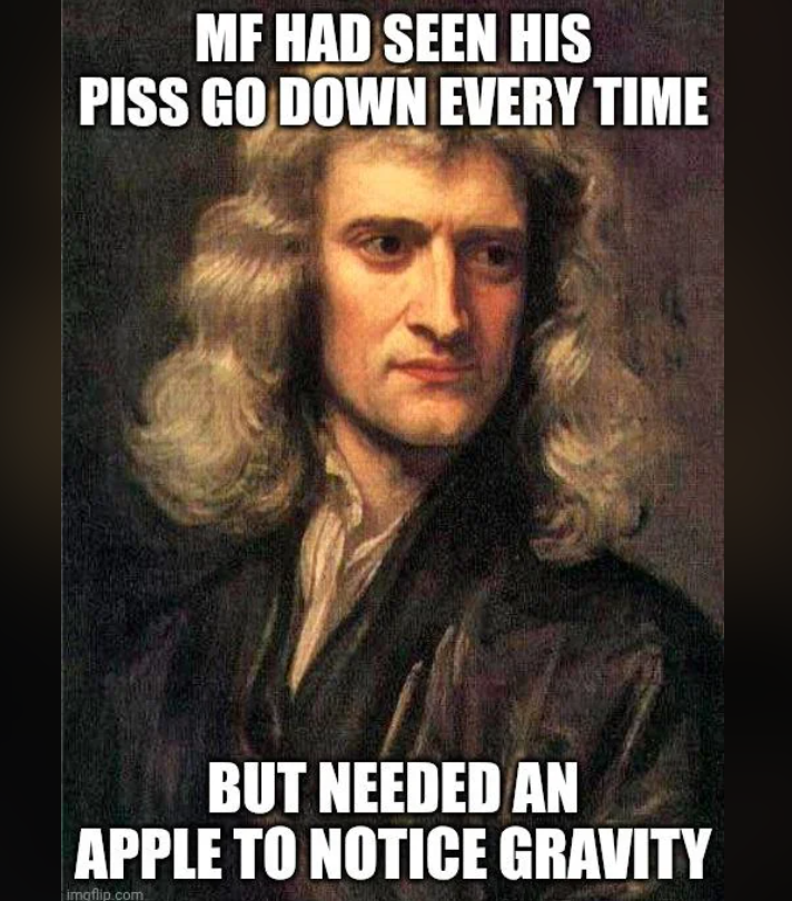 the big breakthrough is that the force that keep is piss going down is the same force that keeps the moon and planets in place.