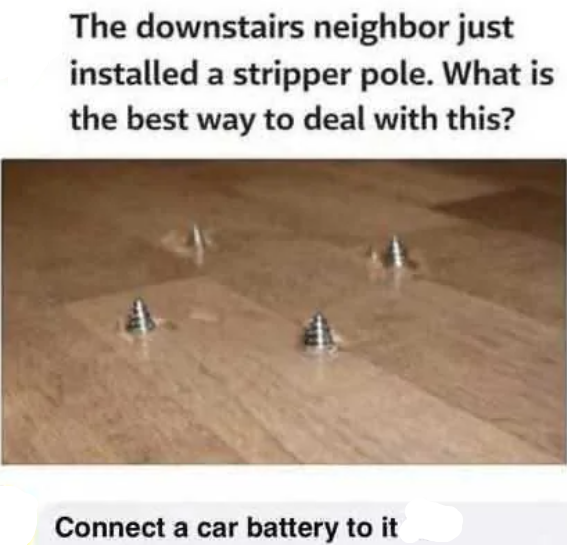minus-squareover_clox@lemmy.worldlinkfedilinkarrow-up2·54 minutes agoBruh, I said let the landlord deal with it, with a bloody foot and photo evidence. Don’t confront the neighbors directly, you won’t have to…