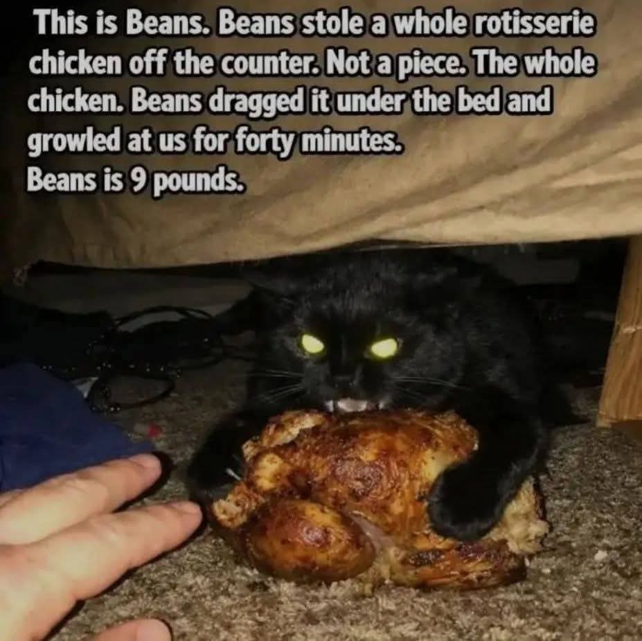 I think the point was that a 9lb cat doesn’t need 2-3lbs of food. Beans is choosing not to share.