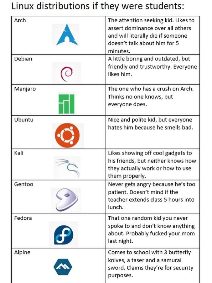 Bazzite: The kid with rich parents who has built three gaming PCs in the past year, just to keep his hardware up-to-date… But he only uses them to emulate games that are at least 10 years old. He also thinks RAID is a backup. He happily parrots whatever last week’s tech blogger was posting about, but he gets some big parts of it wrong because he only read the AI generated summaries.