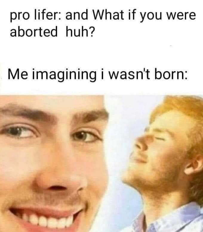 This is one of the most facile “gotchas” I’ve ever heard. If I’d been aborted then I wouldn’t be here. Next question.