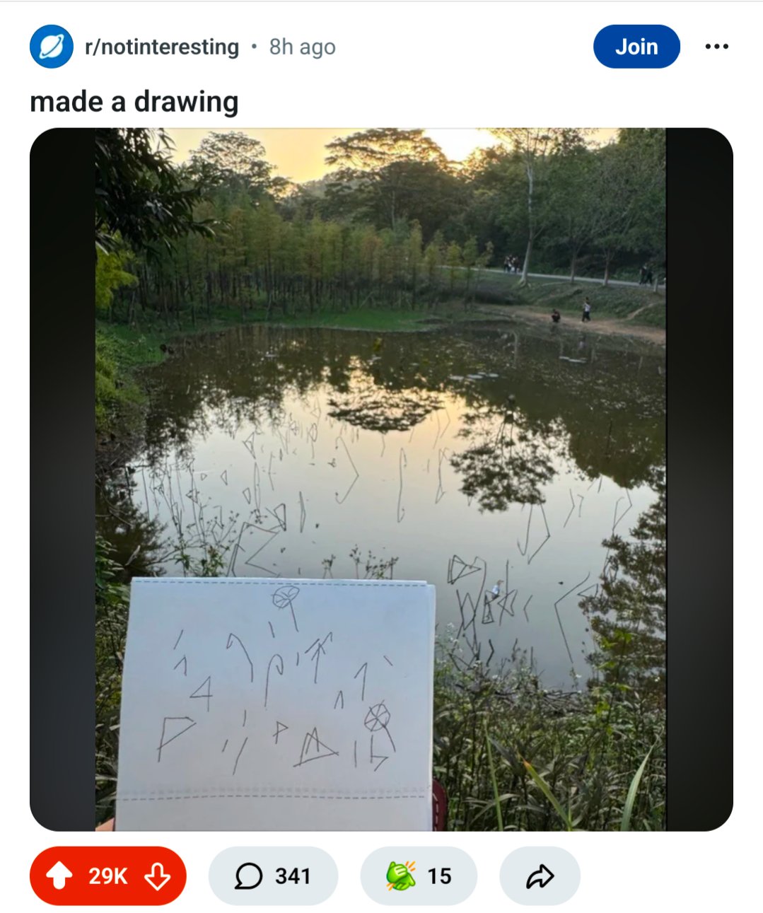 god I miss that sub so much. it was so funny to see what people would do to get people’s upvotes but not be too interesting. It was almost like one of those “I trained an AI to walk” YouTube videos where they just do something goofy for a while before coming up with another silly thing to do.