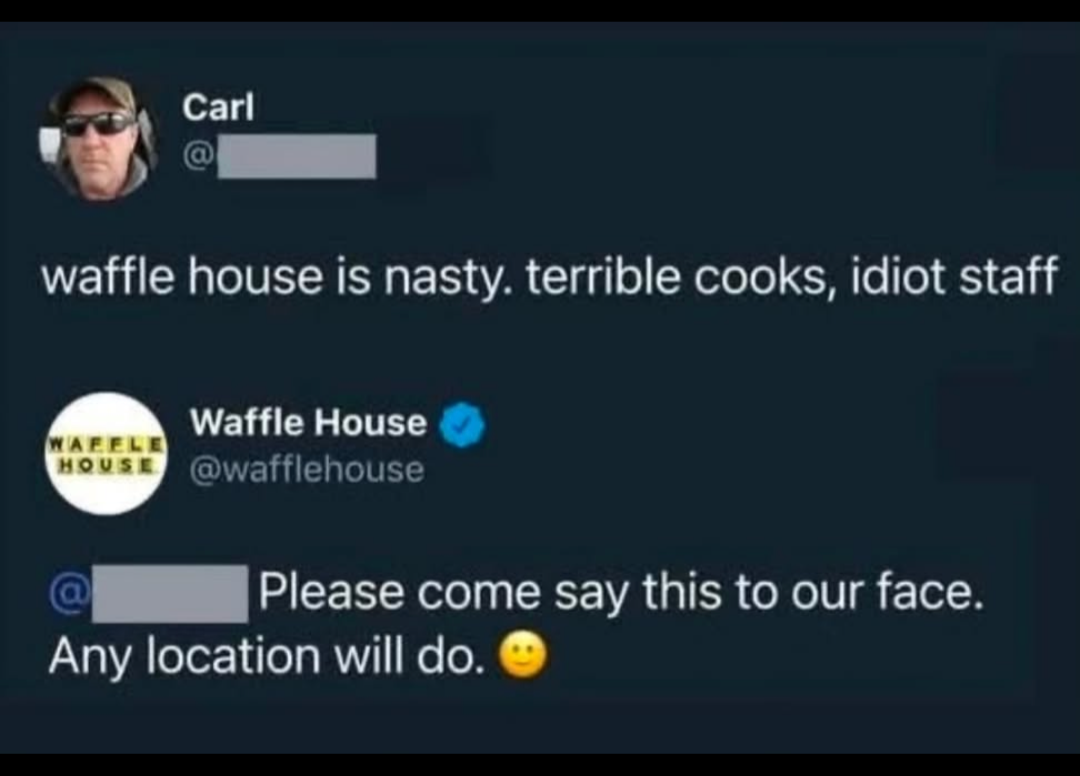 Anyone who rips on waffle house hasn’t been tired, hungry, possibly hungover, and had $10 in their pocket. Eat like a king, bottomless coffee, and no frills food. I’ll take waffle house over Denny’s any day.