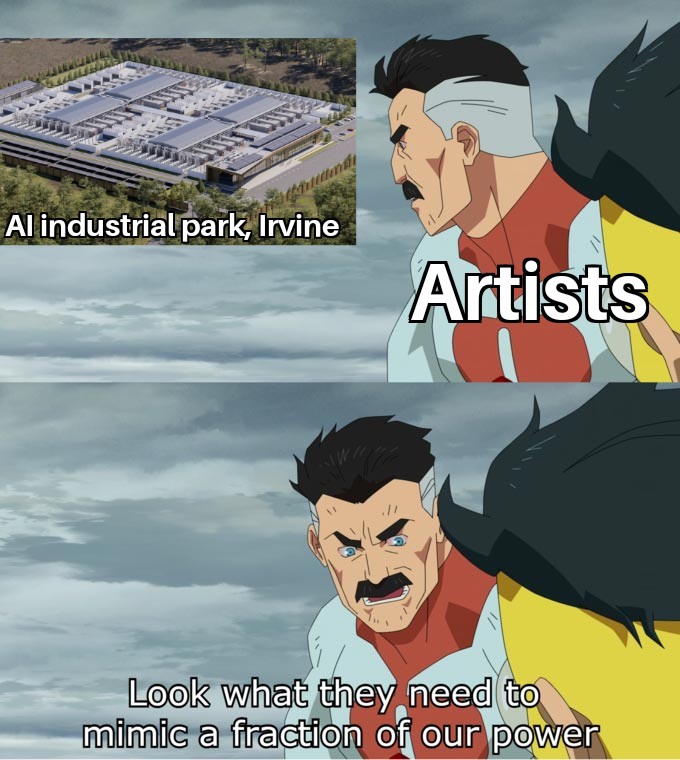 Look what they need to absorb the sum of human art and still draw hands with seven fingers.