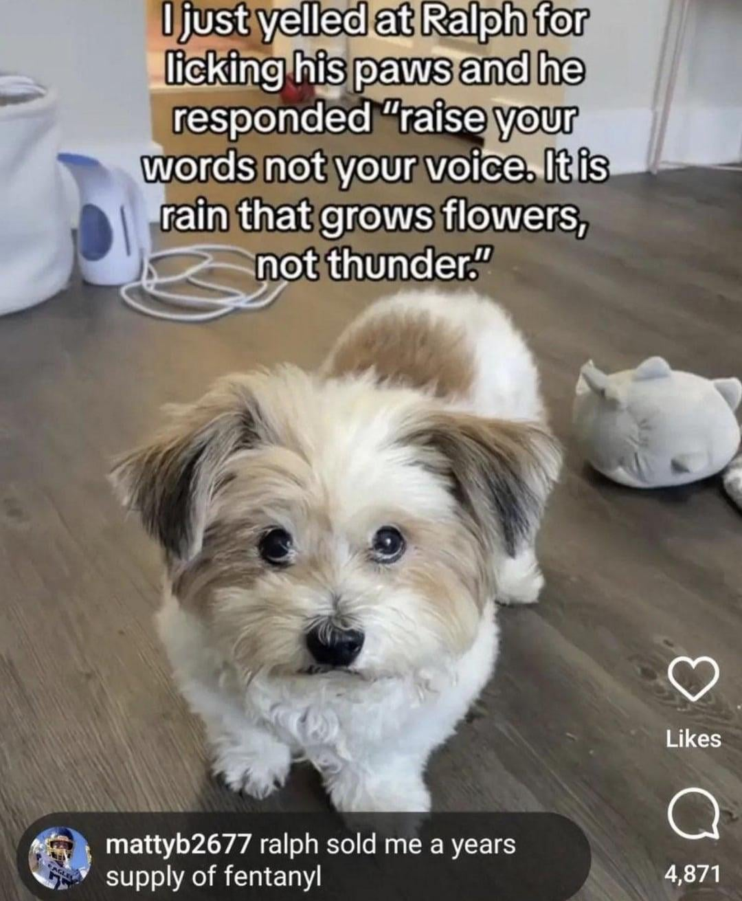 Ralph, what does that actually mean? Raise my words? How about I raise my standards and get a new dog?