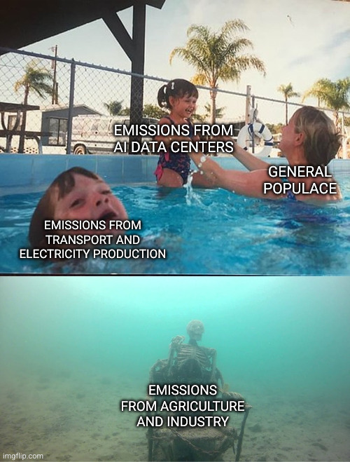 Yes, obviously AI is emitting way too much. It shouldn’t even be producing 0.2% of global emissions, let alone 2%. My main grievance is that no one ever talks about improving industrial and agricultural processes even though they produce around 29% of emissions and 20% of emissions respectively.