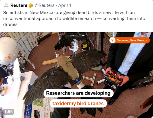 Source: https://www.reuters.com/lifestyle/science/dead-birds-get-new-life-new-mexico-researchers-develop-taxidermy-bird-drones-2023-04-13/