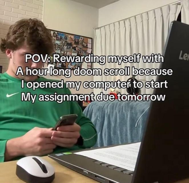minus-squareBoomer Humor Doomergod@lemmy.worldlinkfedilinkEnglisharrow-up8·6 hours agos/assignments due tomorrow/presentation to give at 4pm