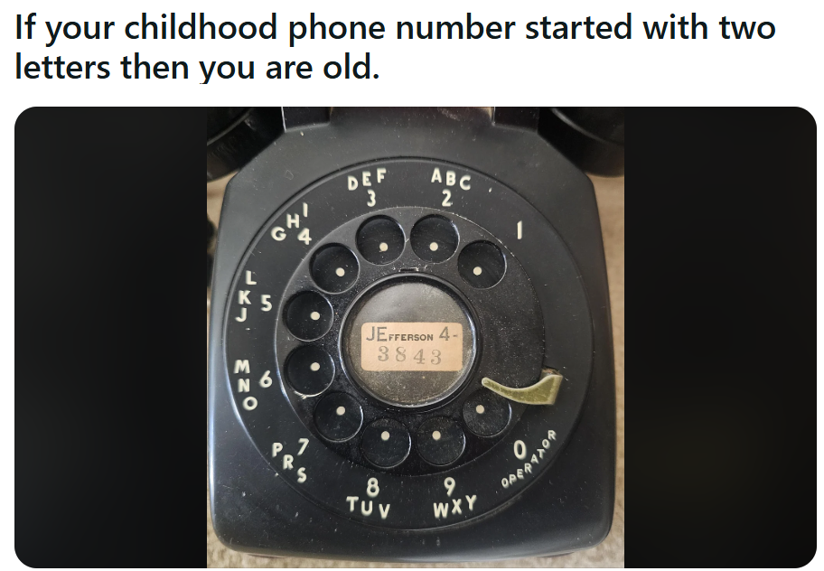 Mine started with ST5, which you had to translate into the number, which was 785. Even as a kid, I knew it was weird. Nobody could ever explain that old tradition of having the letters. Don’t give me a phone number with a combination of letters and numbers, just give me the numbers. Why you got to make a simple thing harder?