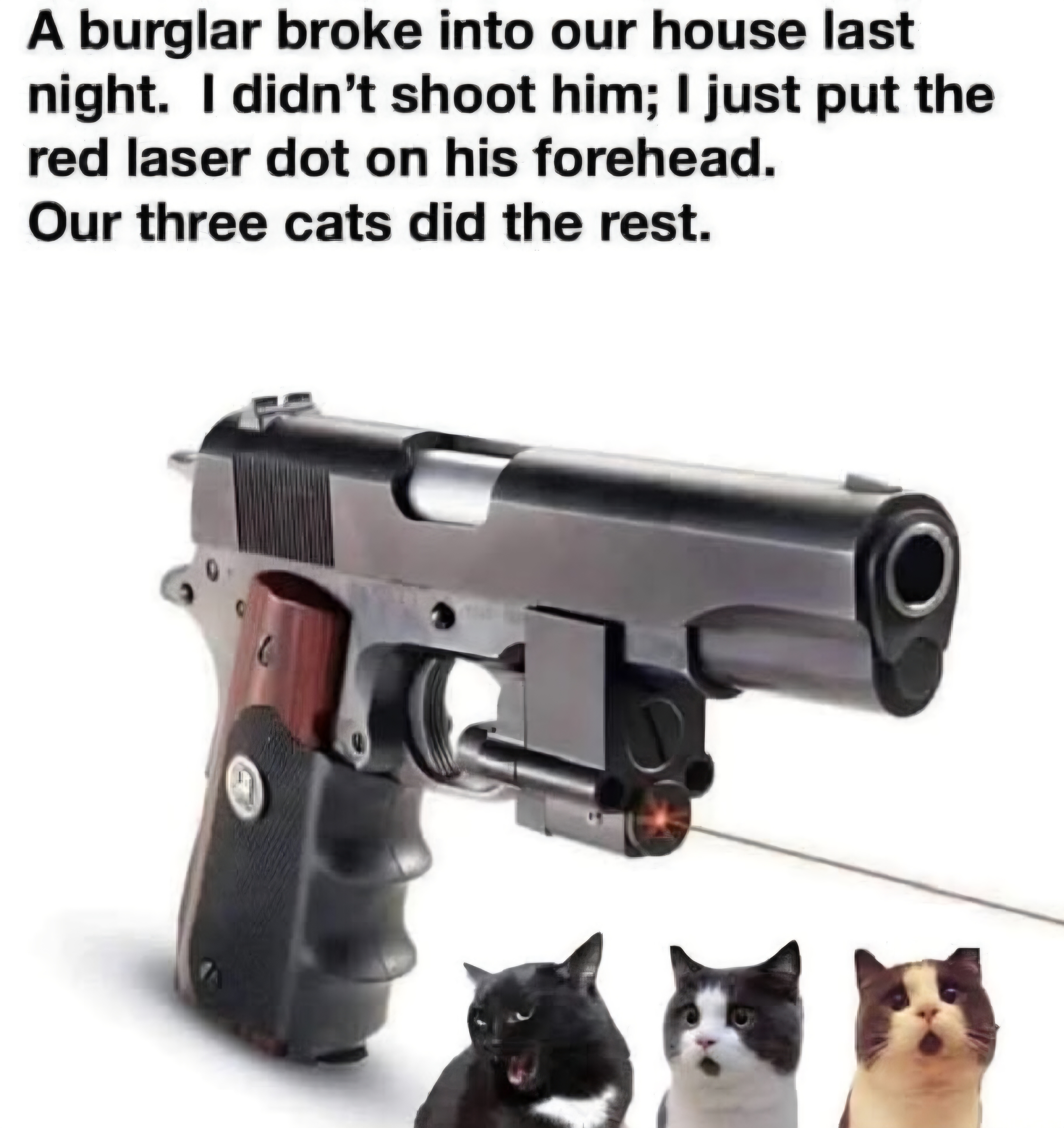 You should never point a gun at something you don’t want to kill. Could have hurt a kitty!