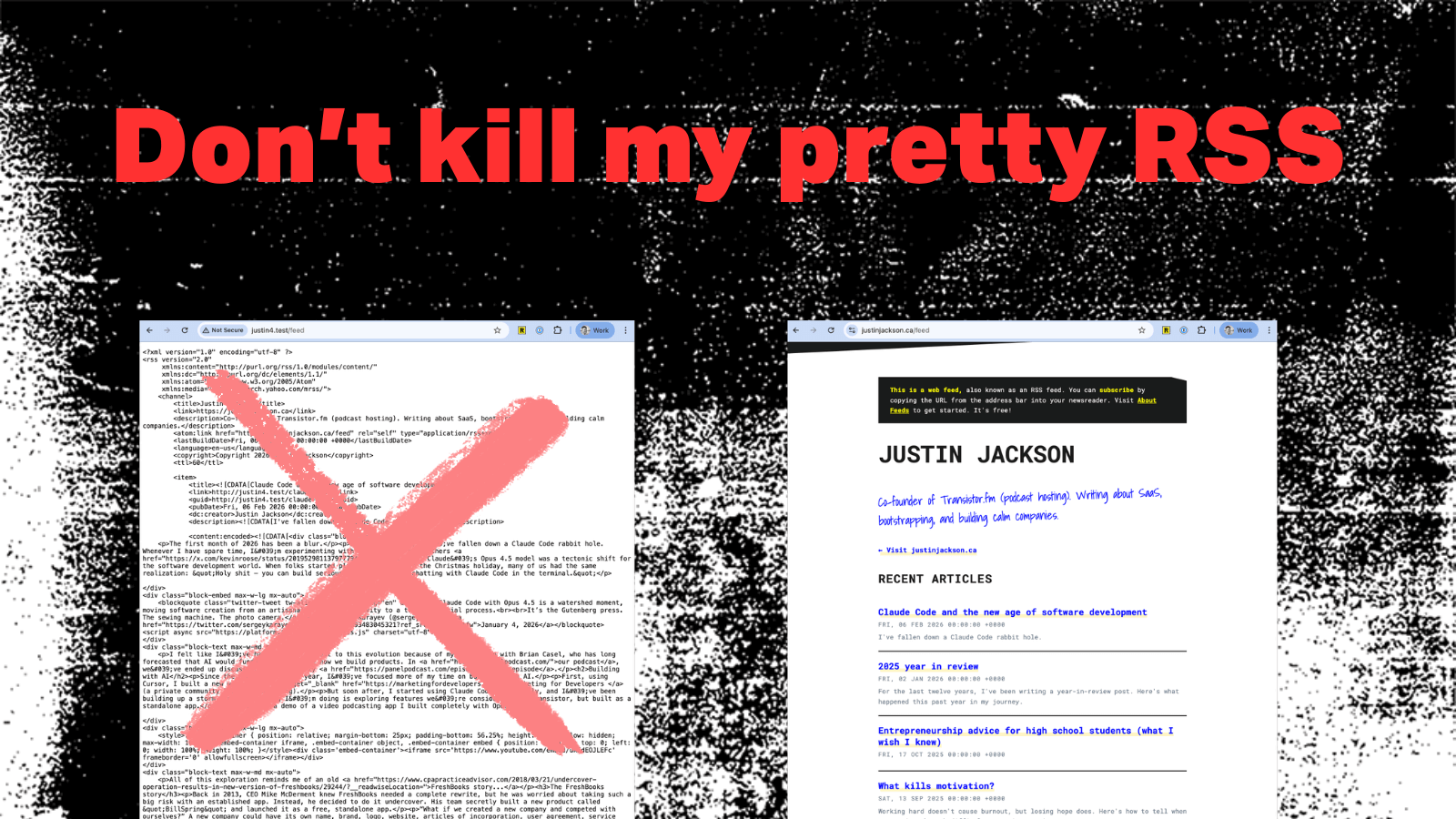 I remember using XSLT to make my site’s RSS look good around 20 years ago. I thought it was so cool, though XSLT was awful to write.