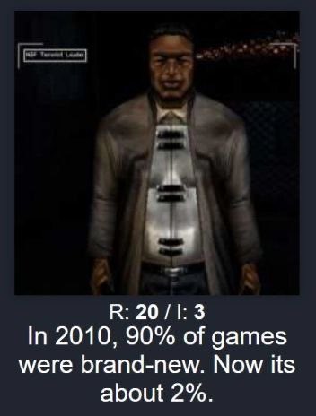 minus-squareChicoSuave@lemmy.worldlinkfedilinkarrow-up1·13 hours ago2010 seems to have the same level of new games as we do now, if the same metrics of “indie vs AAA” are used