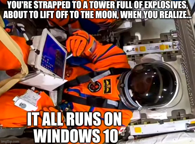 “T minus 10… 9… 8… 7…” System restarting for updates, do not power off… … … Yo, wanna back up all your shit? Click here to let us save a copy of all your shit to our servers! <Yes> <Ask me again tomorrow> Ehhh check that out, it’s time for your FREE upgrade to Windows 11! Click here to… wow, fucking rude. Alright. How about an office suite? Ya want an office suite?? Nevermind that Office is already installed, this one’s special! …what are you a fucking peasant or something? Alright fine, here’s access back to your peasant-ass operating system and an image of a cartoon cat wearing a wrestling belt for some fucking reason. 🖕