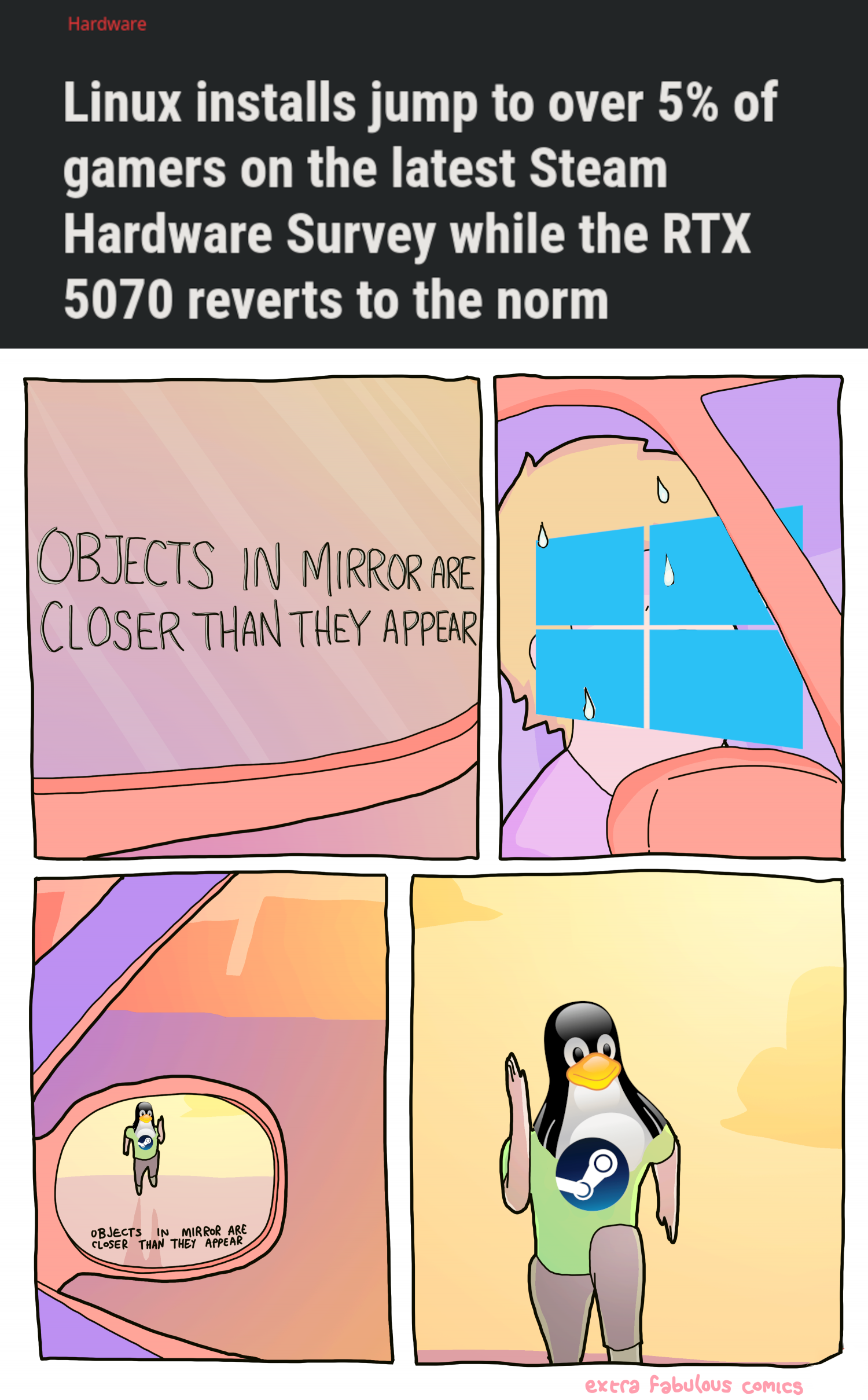 PC gaming is still only a bit over 5%, but it’s one of the last remaining computing environments where Linux hasn’t become the dominant OS choice, as it’s displaced embedded systems and servers and suchlike. Things have changed a lot.