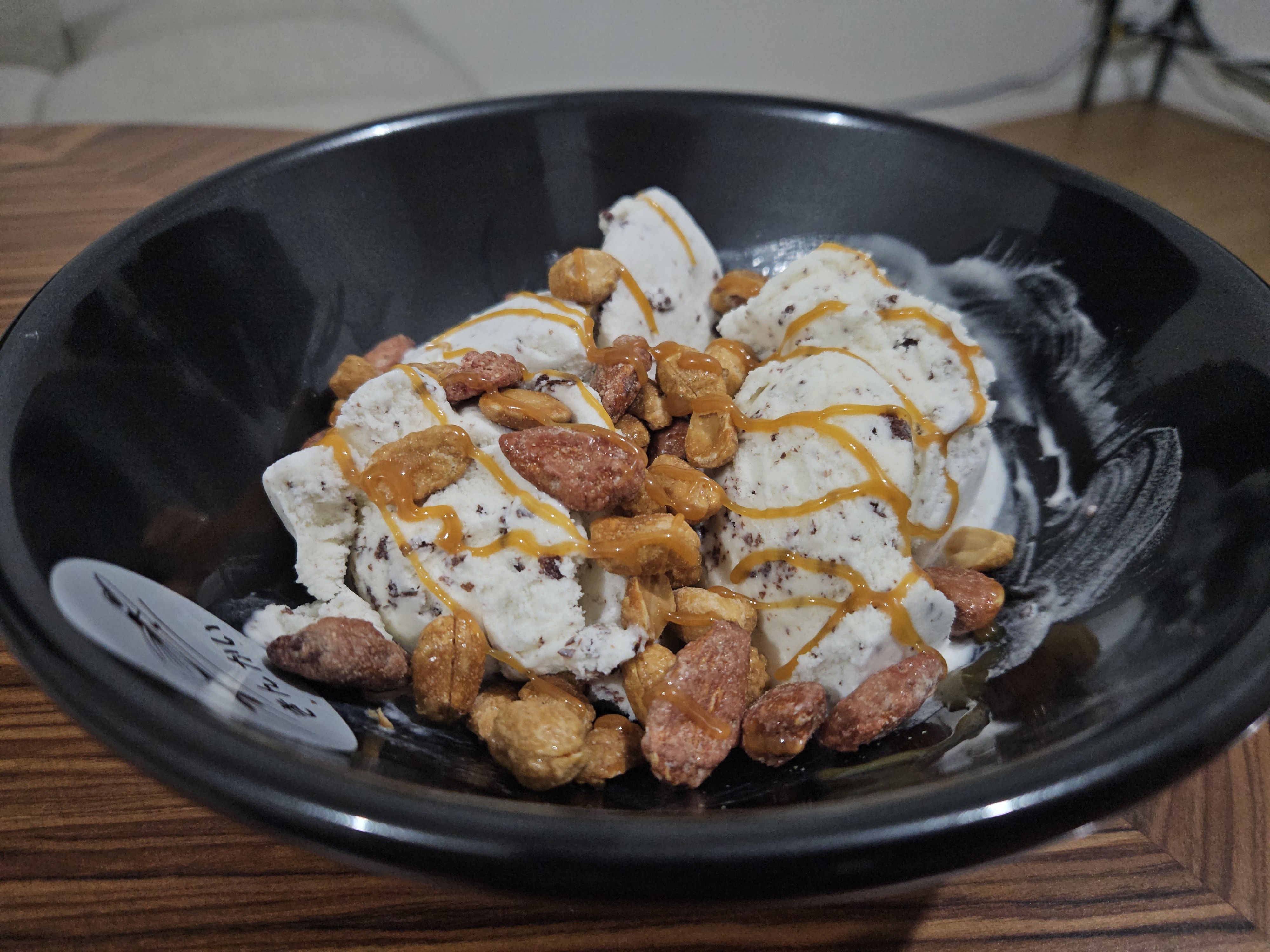 It’s 10 PM. I’m gaming, in my head I’m preparing to go to bed. It suddenly hits me, “I want icecream.” I go out to the nearest grocery store that miraculously closes at 11 PM, buy some chocolate chip vanilla ice cream, caramel sauce and some honey coated almonds and peanuts.