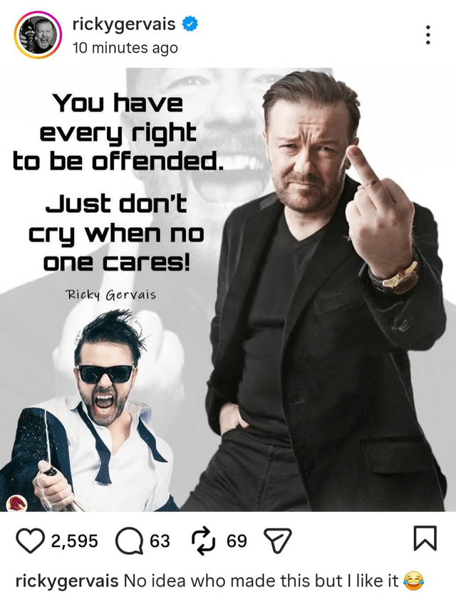 Any time anyone mentions Ricky gervais this picture should be posted. Thank you for performing the service.