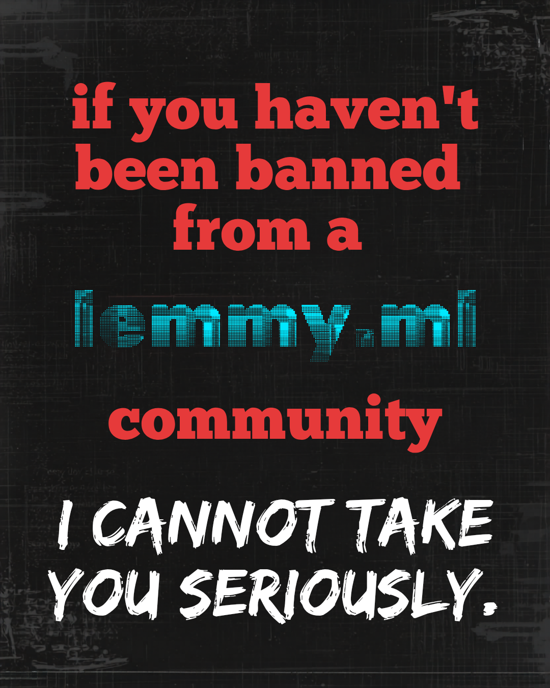 minus-squareUnderpantsWeevil@lemmy.worldlinkfedilinkEnglisharrow-up7arrow-down16·2 hours agoacts like an asshole gets banned “I’m a serious person!”