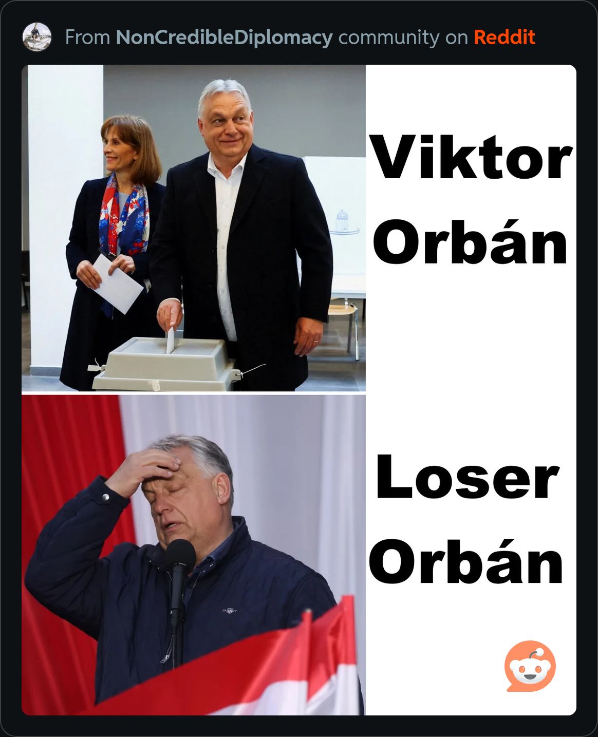 Who knows, as someone not from Hungary I am just hoping the opposition isn’t as bad as him. I hope nothing but good comes to the innocent so please fucking not be terrible