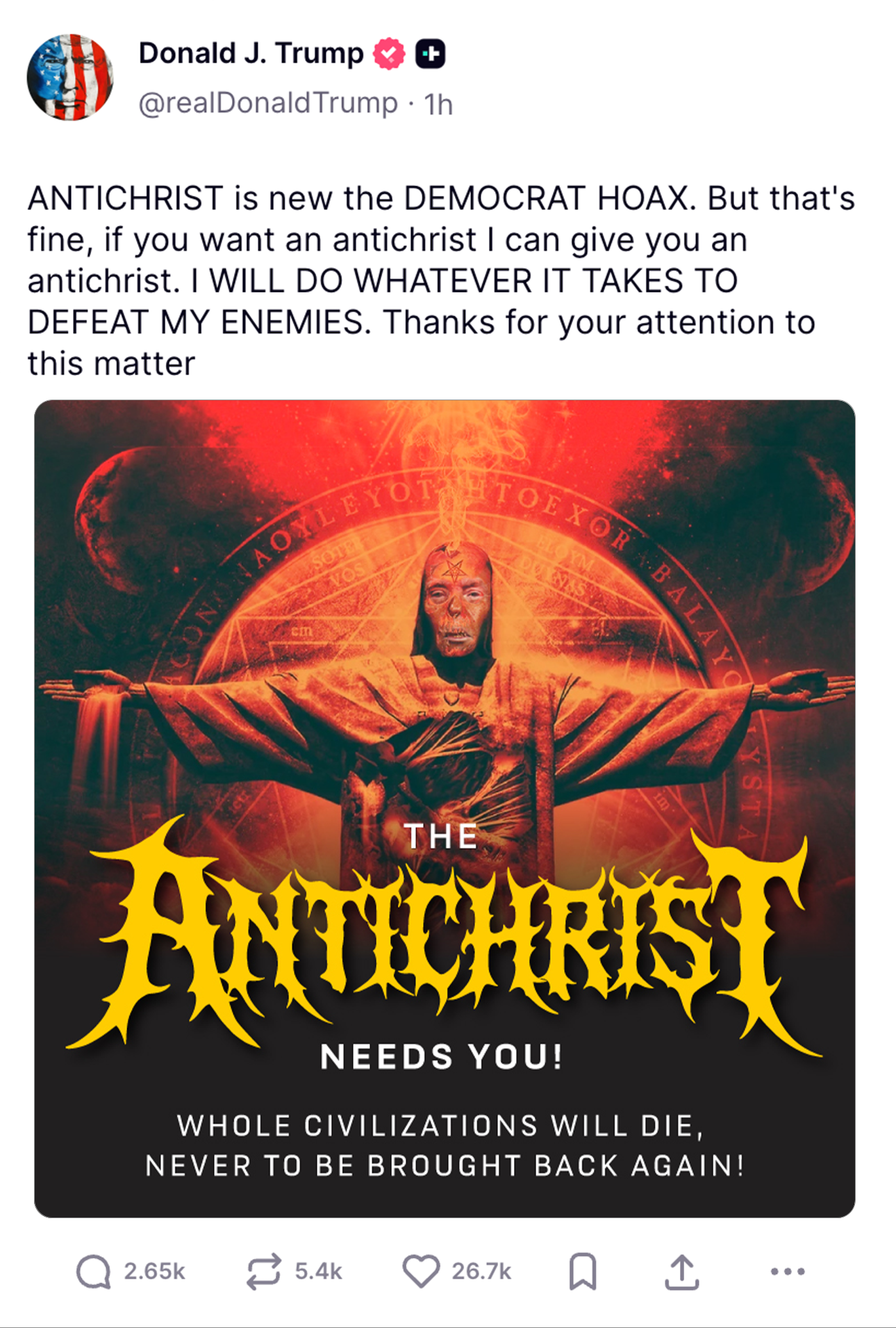 And, of course, he is threatening killing the Pope right now. And posting memes about him being Jesus.