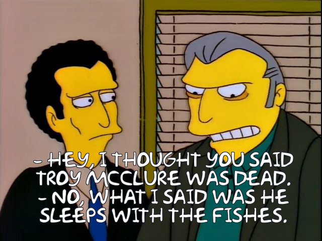 No. I said he sleeps with the fishes.