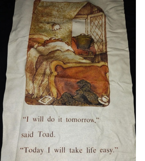 The moral isn’t the opposite. Toad becomes stressed about all the work that needs to be done tomorrow. He instead gets all his work done pretty quickly, takes the rest of the day off, and resolves to do nothing the next day now that he’s more relaxed.