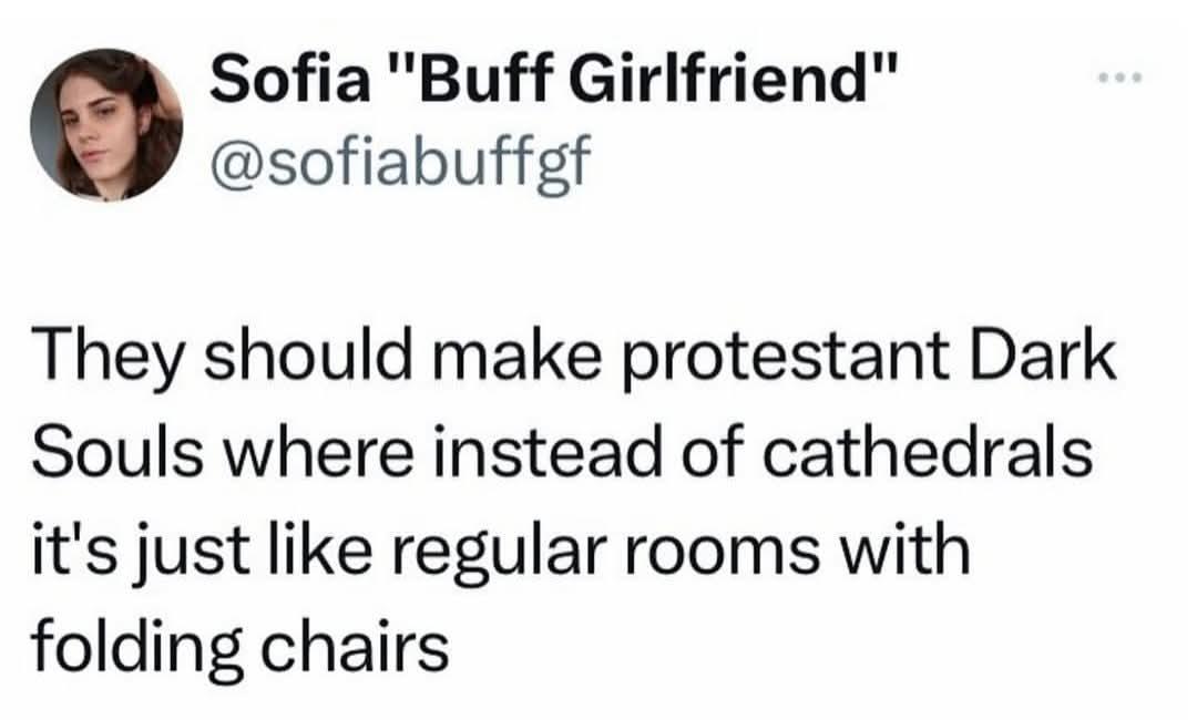 Tbh dark souls 3 had too many cathedrals, so I’d be okay with a few rooms with folding chairs.